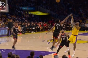 湖人vs掘金詹姆斯被肘击