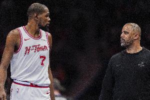 本赛季,杜兰特(37岁193天)出战77场比赛,场均上阵36.3分钟联盟第三高(仅次于马克西和阿门),能得到25.9分5.4篮板4.7助攻。