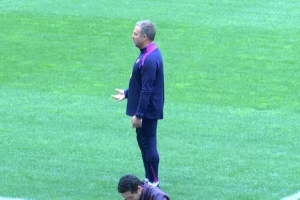 弗里克似乎对球场的草皮状况并不满意,他蹲下身,触摸大都会球场的草皮,但相关人士表示,球场的草皮符合欧足联要求。
