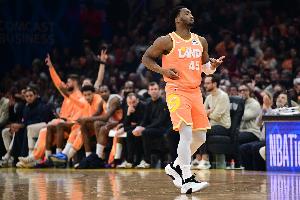第三节比赛,骑士球星米切尔突然爆发,单节投篮8中6,三分球2中1,拿到13分1篮板3助攻,在他的带领下球队也是反超老鹰进入末节。