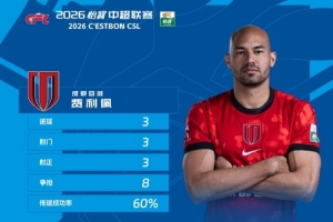 在本轮最佳球员评选中,费利佩当选2026怡宝中超联赛第4轮最佳球员!凭借出色表现,费利佩闪耀赛场、实至名归,让我们为他喝彩!